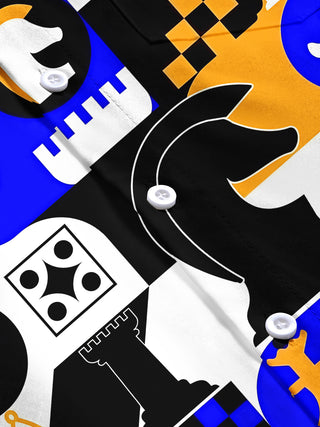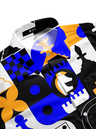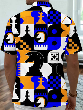 Chess Print Men's Pocket Short Sleeve Shirts